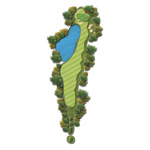 It is a second shot hole. A big pond rests at 270 yards away, in the end of the fairway. I will use a hybrid 2 iron to tee off, leaving the ball on an up slope and 170 yards to the pin. Add 10 yards for the second shot to the elevated green and a bunker in the left front to carry.